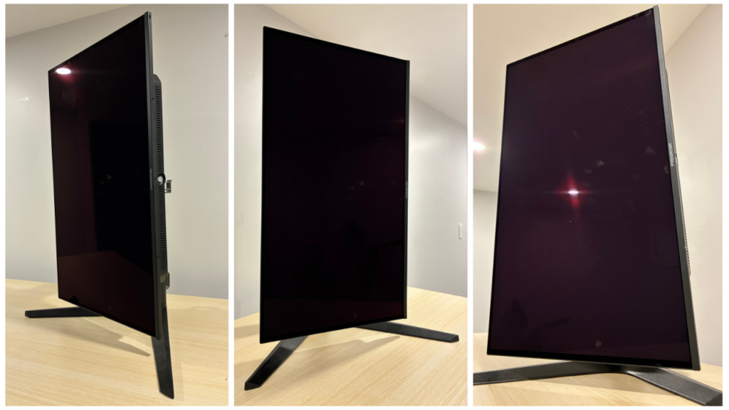 The ErgoStand is a masterclass in comfort. I spend 10+ hours a day at my desk, so being able to adjust the height, tilt, and swivel with a light touch is a genuine blessing. It stays exactly where you put it. The design manages to be aggressive enough for a gaming setup but refined enough that it doesn’t look out of place in a professional studio. The 26.5-inch size is the “sweet spot” for competitive gaming—everything is within your field of view without having to move your head.