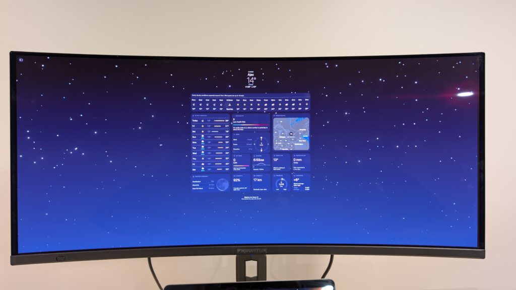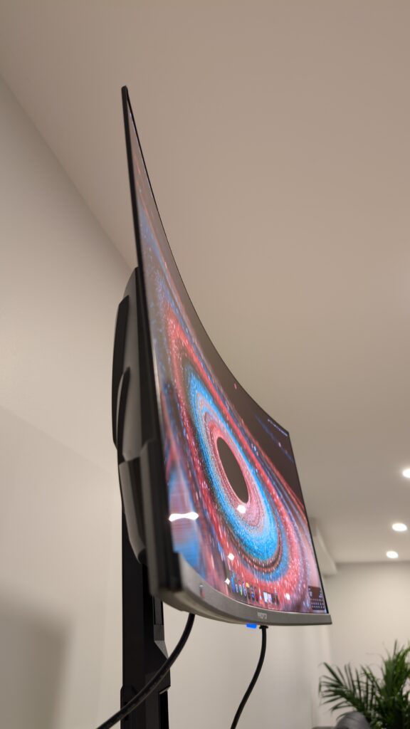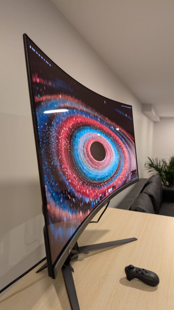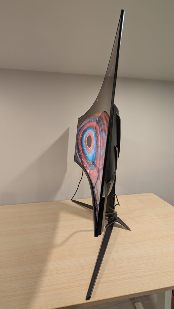 Okay, so let’s talk about the size. Make no mistake, this thing is a beast. At 34 inches, it commands a serious presence on your desk, and that beastly all-metal stand has a wide footprint to keep it stable. It’s also got some real weight to it, so I’d recommend building it right where you plan to use it. I’m giving it an 8/10 here because you absolutely need a good-sized desk to give this monitor the home it deserves. But for me, the weight is a fair trade-off for the incredibly sturdy and premium build quality.